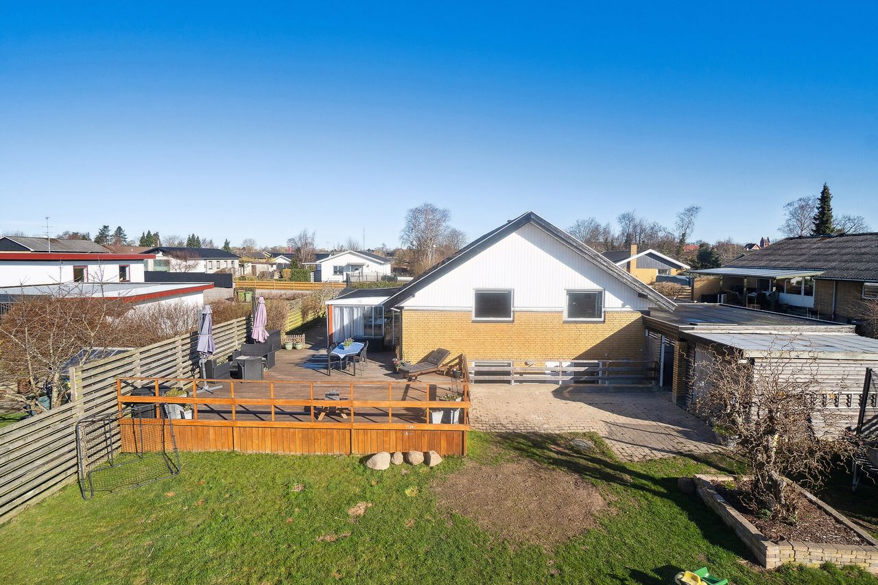Træd ud i haven, hvor den store træterrasse bliver et yndet samlingssted med plads til sommerfesten. Sæt gang i den store grill, og dæk op under sommersolen, mens de små suser rundt på græsplænen og hygger sig.