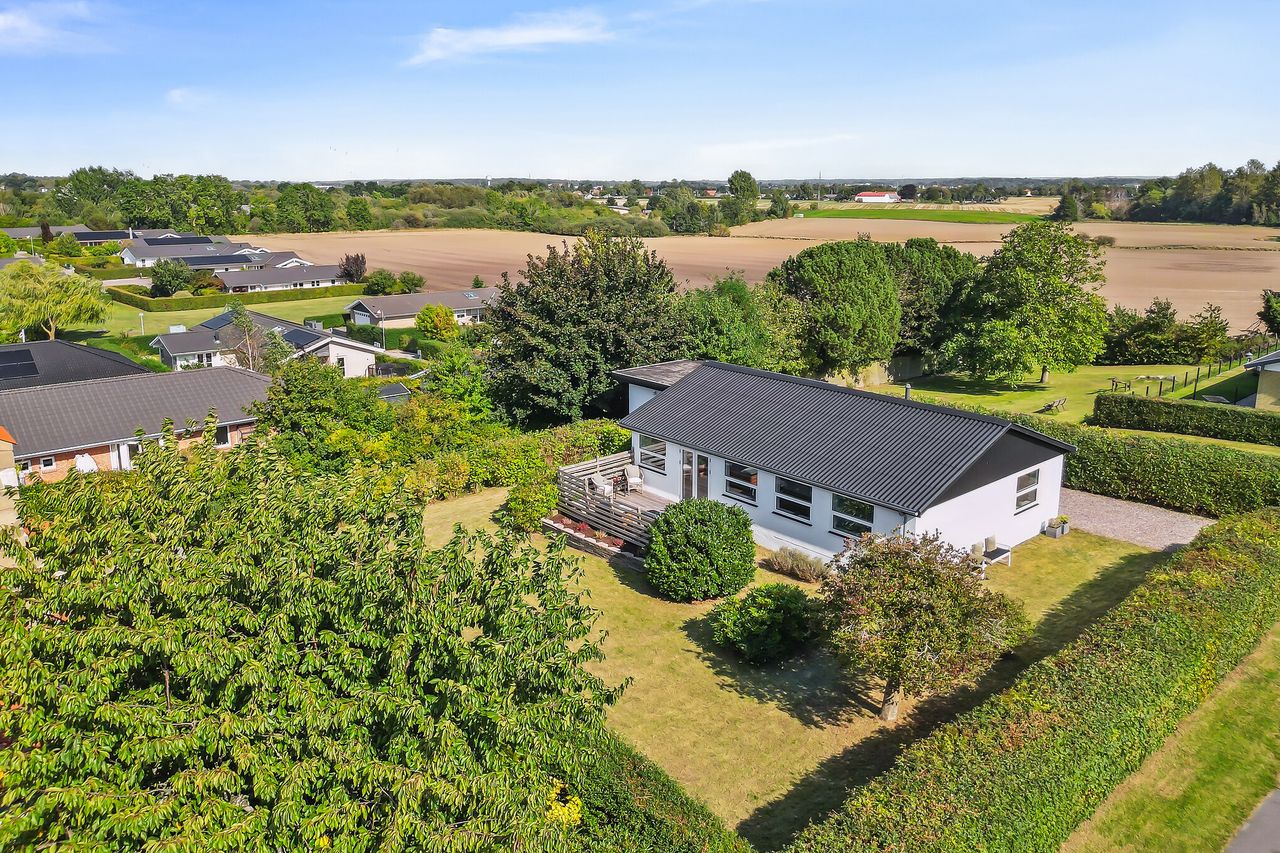 Hvis I drømmer om en indflytningsklar bolig og en fredelig beliggenhed nær byen og naturen i det nordlige Sjælland, så tag med os til Skærød. Her, på en høj grund i bunden af et lukket villakvarter, ligger nemlig en flot og veldisponeret etplansvilla, som er blevet grundigt renoveret og moderniseret i 2023-2024 og således er lige til at overtage. Villaen tilgodeser både børnefamilier, singler og par, der ligeledes får en god garage og en skøn have med i købet.
