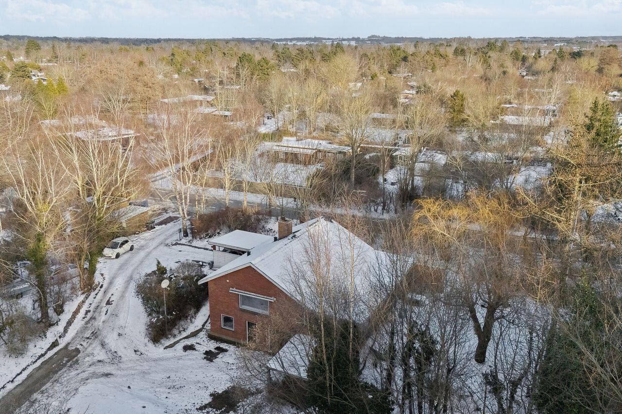 Denne ejendom i Vejby Strand tilbyder masser af plads med potentiale. Her får du en stor naturgrund på over en halv hektar og et hus, der trænger til renovering, men som rummer en funktionel planløsning og gode rammer for en ny ejer, der ønsker at sætte sit eget præg. Den naturskønne beliggenhed tæt på kysten og Tisvildeleje er også særdeles attraktiv. Nærområdet er spækket med natur, og I kan gå til stranden og Heatherhill på omtrent et kvarter. Der er tale om et roligt miljø med lysåbne marker, men alligevel er der indkøbsmuligheder og spisesteder spredt omkring jer, ligesom den nye placering af Musik i Lejet ligger få skridt fra hjemmet. Der er også blot halvanden kilometer til fornødenheder i stationsbyen Vejby, og efter 20 minutter på cykel står du midt i det stemningsfulde Tisvildeleje. På adressen fremstår ejendommen klassisk og markant i røde mursten med tilhørende carport og udestue. Grundarealet giver god afstand til naboer og er præget af flere gamle træer, som forstærker følelsen af privatliv. Der er optimale forudsætninger for at skabe hyggelige uderum i den eventyrlige skovhave. Huset består af to etager, som begge er i niveau med det let kuperede terræn. Du træder ind ad hoveddøren til overetagen, hvor boligens opholdsrum er placeret sammen med tre værelser og et badeværelse. Stuen ligger for enden af gangen, og herfra er der et flot udsyn over haven. Der er også god plads til indretningen i stuen, og udestuen bidrager med endnu mere rum til eksempelvis et langbord, grønne planter og hobbyartikler. Lysindfaldet er skønt begge steder. Køkkenet er på den anden side af stuen, og de to rum kan nemt forenes i et åbent køkken-alrum. Kælderen indeholder et vaskerum og tre disponible rum.