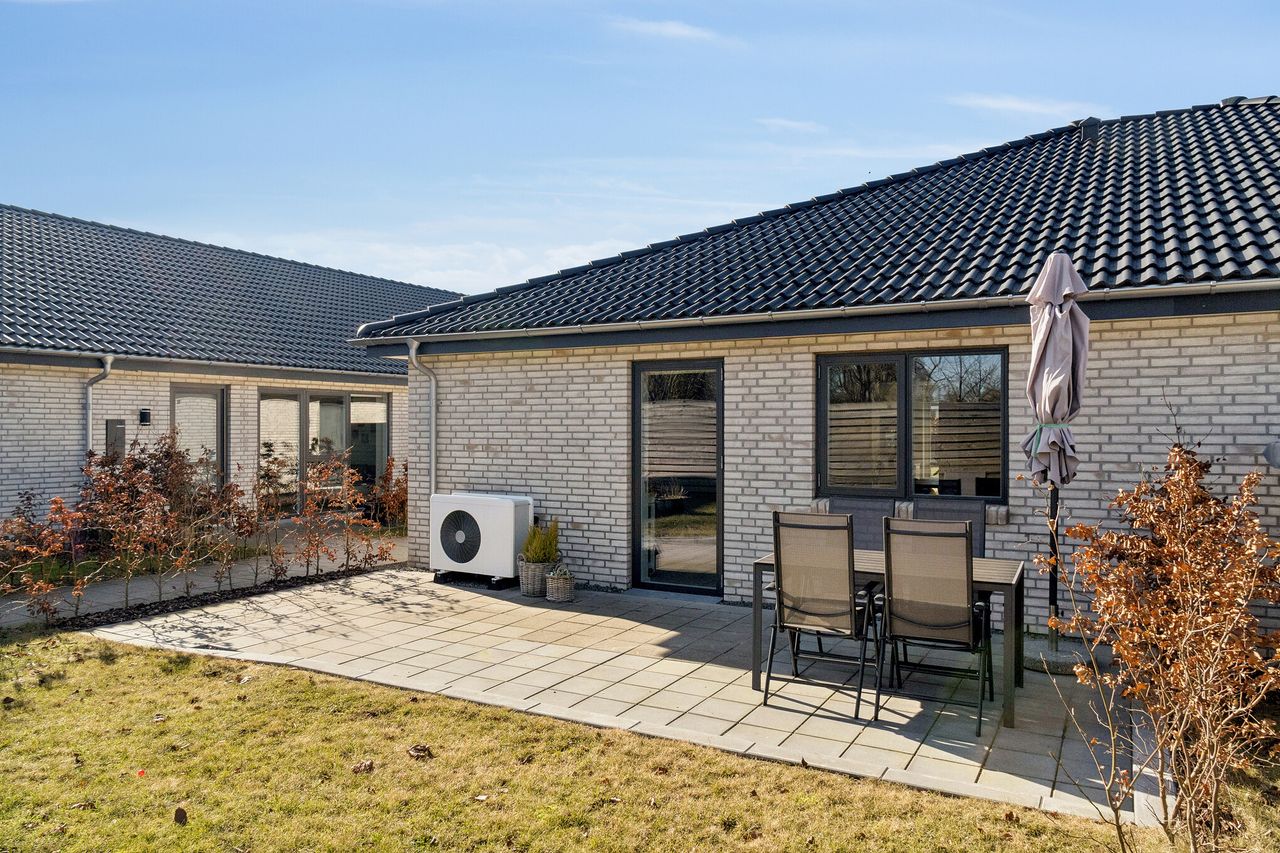 Udearealerne er anlagt med fokus på nydelse og minimal vedligeholdelse, så I kan bruge tiden på det, der betyder mest. I får fornøjelsen af hele to dejlige terrasser, der er placeret mod henholdsvis øst og vest, hvilket gør det muligt for jer at følge solen fra morgenkaffen til de sene aftentimer. Den lille, ugenerede have er både grøn og hyggelig, og terrassedøren fra stuen skaber en glidende overgang mellem inde og ude, så haven føles som en naturlig udvidelse af jeres opholdsrum.