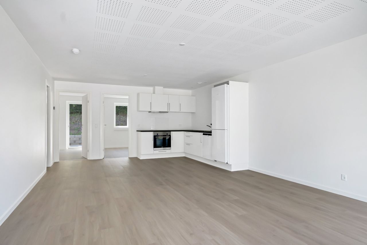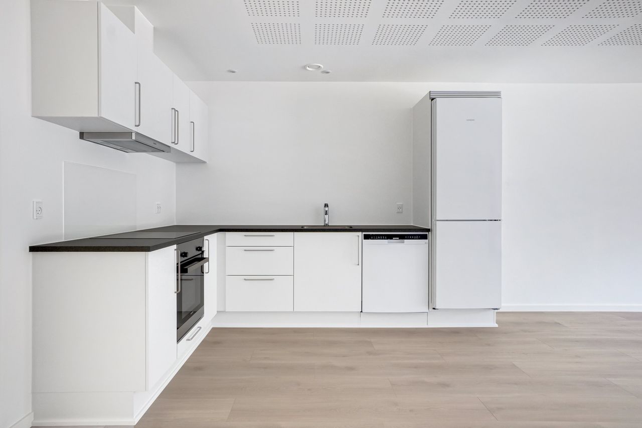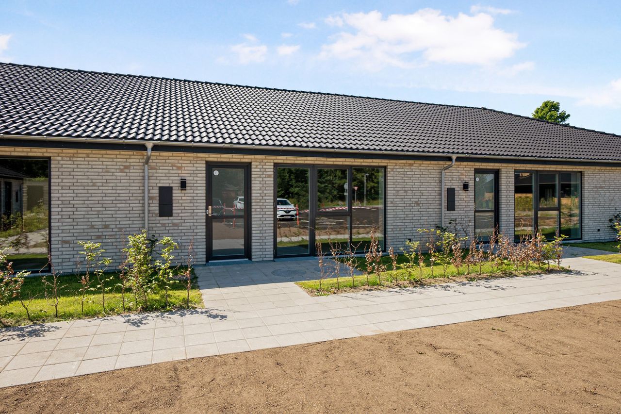 Rækkehuset er et endehus og fremstår moderne og indbydende med gode parkeringsforhold samt brugsret til eget udhus – perfekt til opbevaring af cykler, havemøbler eller sportsudstyr. Indenfor mødes I af en lys og funktionel indretning med entré, to rummelige værelser og et åbent opholdsmiljø, hvor køkken og stue smelter sammen i et elegant og luftigt rum. Det stilfulde badeværelse og et praktisk depotrum fuldender boligen, der emmer af moderne komfort.