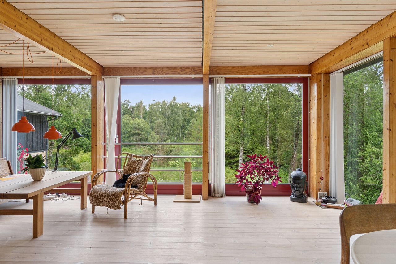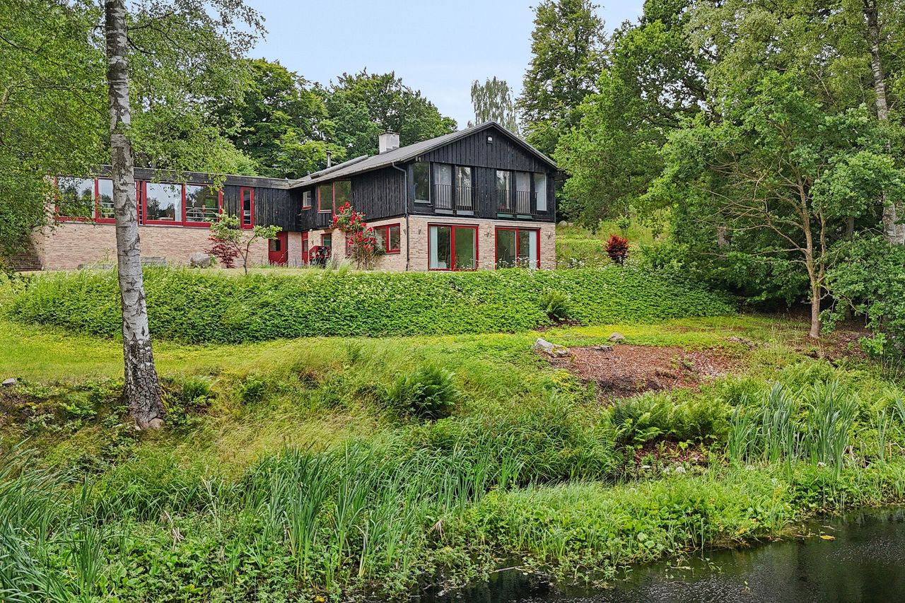 Grunden skråner let, og på toppen ligger ejendommen, som er delvist muret og gjort i træ. Underetagen blev istandsat i 2020, og den smukke glaspavillon, der matcher huset, fik en opgradering i 2023. Med to fulde etager på hver 185 kvadratmeter er der næsten ingen grænser for udfoldelsesmulighederne. Det er oplagt at bo to familier under samme tag og kaste sig over pladskrævende hobbyer eller erhverv, ligesom I kan vælge at udleje en del af arealet.
