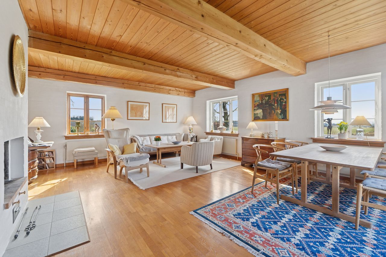 Indenfor venter en umådelig velholdt bolig, der fremstår med lyse rammer, pæne overflader og gedigne materialer. Stueetagen er dedikeret til et køkken-alrum, to stuer og en mellemgang, der kan indrettes efter behov. Dertil er der også et badeværelse med brus og kar samt en dobbelt håndvask. Førstesalen fremstår lys og imødekommende og er godt indrettet med to værelser, et toilet og en møblerbar repos. Her, såvel som i stuerne, er der synlige eller fritlagte bjælker, der understreger charmen og atmosfæren på en landejendom som Aggebodal.
