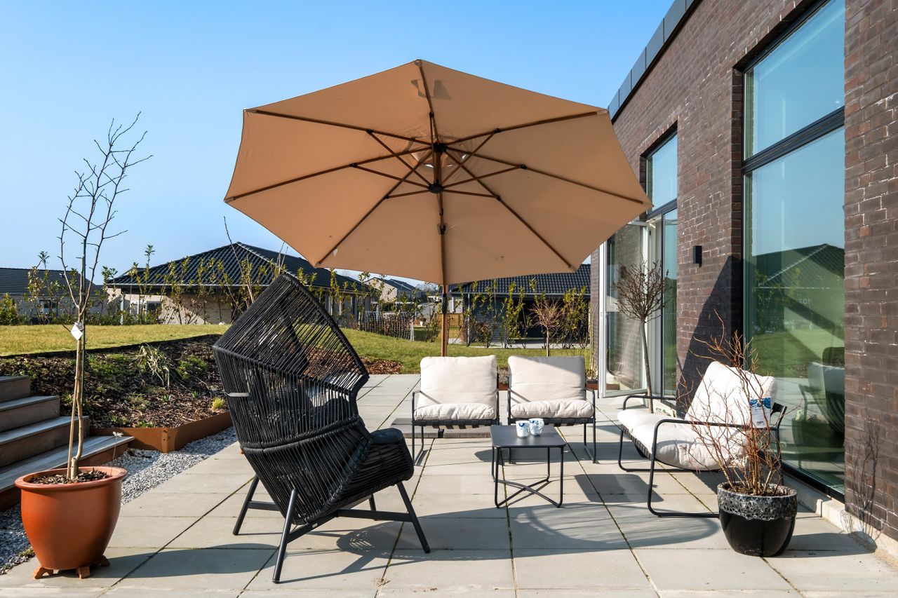 Også udenfor er der masser af gode rum på den 911 kvadratmeter store grund, hvor I blandt andet kan glæde jer til to dejlige og meget solrige terrasser, hvilket giver mulighed for at dække et langt frokostbord, hvor hele familien og alle vennerne kan samles, ligesom I får fin plads til lave loungemøbler og solstole, hvorfra I kan nyde det gode vejr.