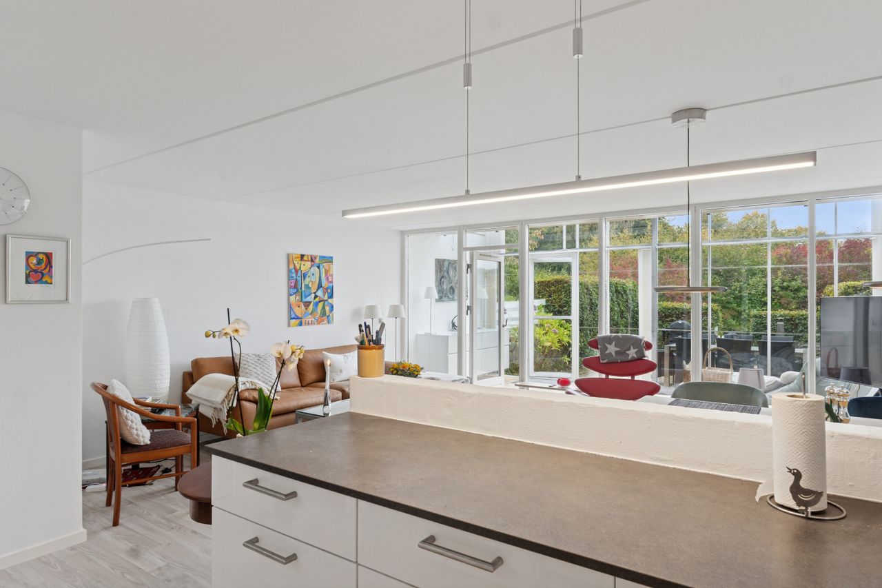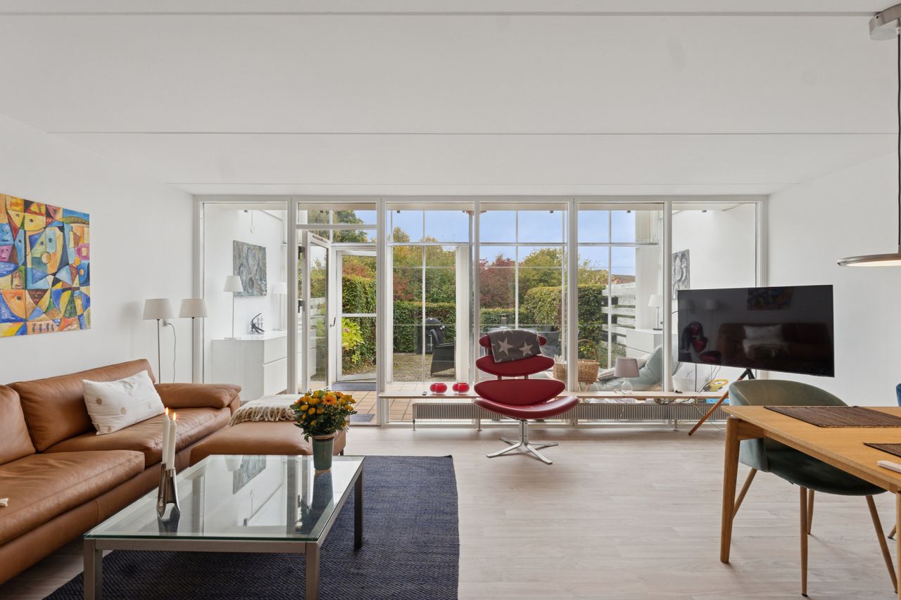 Mod vest er facaden udsmykket med talrige glaspartier, som giver udsigten de bedste vilkår. Ejendommens udtryk er meget arkitektonisk set udefra, mens de indvendige rammer især skal fremhæves for et tårnhøjt vedligeholdelsesniveau. Gulve, døre og ovenlysvindue såvel som badeværelsernes og bryggersets sanitet og armatur er alt sammen udskiftet, og væggene er tilmed filset i det meste af hjemmet. Komforten og kvaliteten er med andre ord prioriteret, hvad I mærker på tværs af et køkken-alrum i åben forbindelse til stuen og udestuen samt tre værelser, et badeværelse, et toilet og et bryggers.
