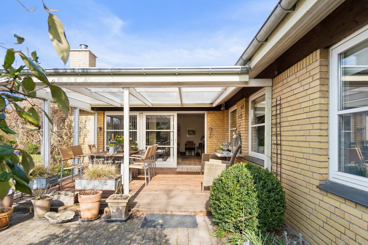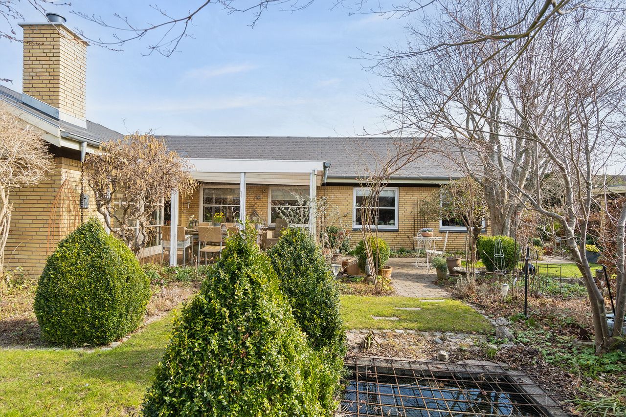 Haven fuldender herlighederne med en formidabel og særdeles solrig terrasse. Beplantningen i haven er spændende og frodig, og der er opført et drivhus, som giver gode muligheder for at dyrke egne grøntsager. Ved indkørslen er der både en carport og en garage.