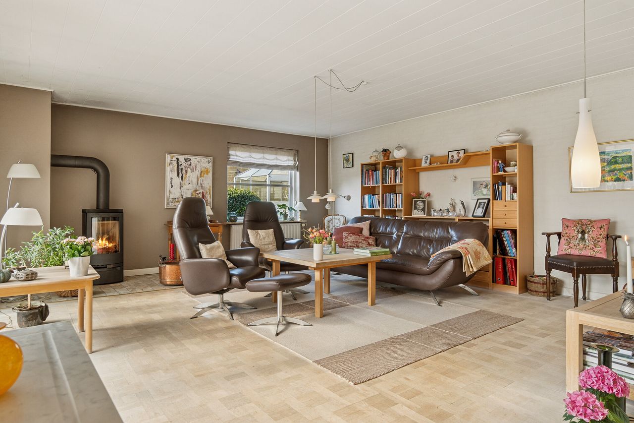 Huset præsenterer sig med et pænt udtryk. Den gule murstensfacade får selskab af hvide vinduesrammer og et mørkt tag, og inden døre får I ikke færre end 181 kvadratmeter. Det hele er centreret omkring den anseelige stue, hvor et rigt lysindfald, masser af indretningsmuligheder og et flot gulv slår tonen an. Tilstødende ligger det rummelige køkken, hvor de fine skabselementer får følgeskab af muligheden for en spiseplads.