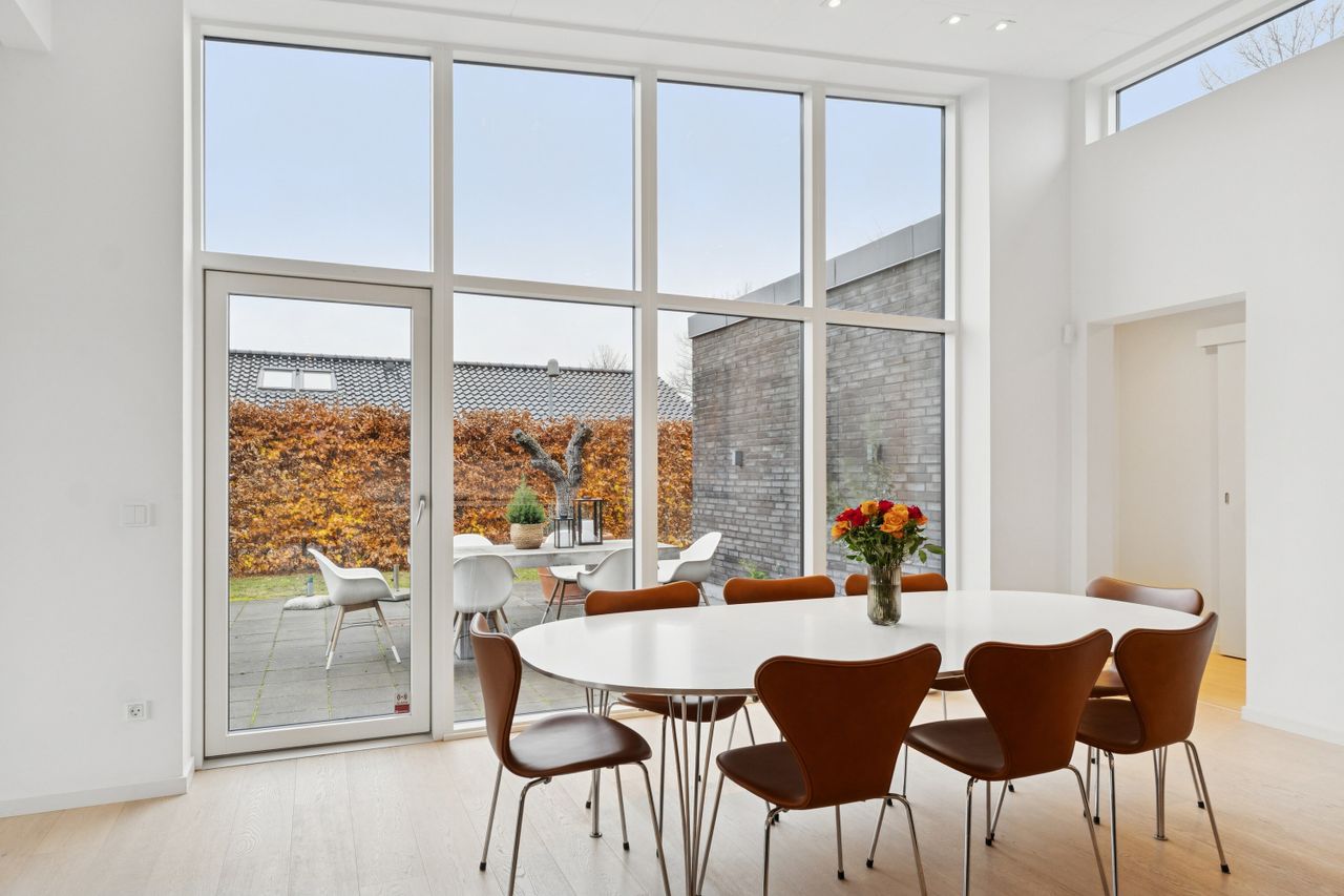 Huset er bygget for 8 år siden og står klar med moderne, nem luksus. Den slags med motoriserede skuffer, smarte systemer til at programmere lyset, og kvalitet i materialerne. Alt er i orden og designet til det bekvemme, afslappede liv. Med kæmpe carport og en professionelt anlagt have, der med vilje er minimalistisk, så der ikke er havearbejde. Gennemtænkt til de, der hellere hygger med drinks på terrassen, end luger ukrudt. Afdelingerne til børn og voksne skaber privatliv, og køkkenalrummet evner at samle hele familien, inklusive teenageren der ellers hellere ser på TikTok.
