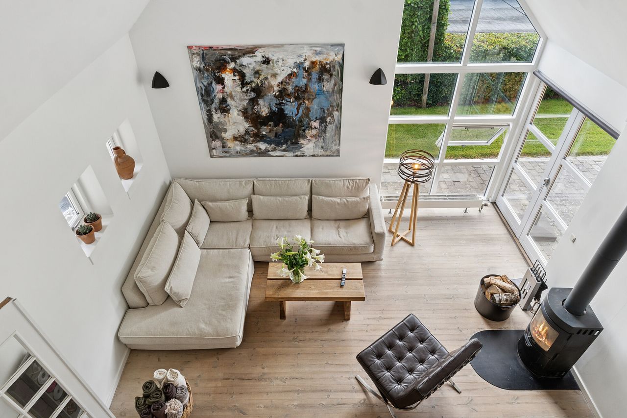 Sørup selv, der ligger blot 40 minutter fra København, er indbegrebet af velpolstret landsbystemning og huset er tegnet og indrettet til det gode liv. Der er højt til kip, pejse inde og ude og udgang til terrasserne. De store børn kan endda blive hjemme lidt længere med muligheden for egen studiebolig.