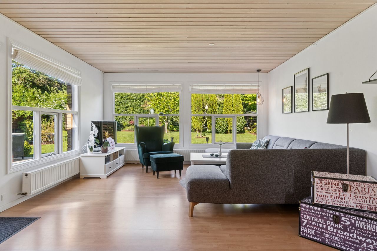 Det velholdte hus er helt i tråd med den flotte forhave, som består af stenbede i niveauer, og I får ligeledes en dobbelt carport med i købet. I træder indenfor i en centralt placeret entré, hvorfra I kan tilgå alle rum i stueetagen. Til den ene side ligger et stort, lyst køkken-alrum, der udgør familiens samlingssted, hvor I kan lave mad side om side med kreative sysler og andre aktiviteter. Samtidig er køkkenet let afgrænset fra stuesektionen, og der er masser af plads til at skabe hyggelige opholdssteder.