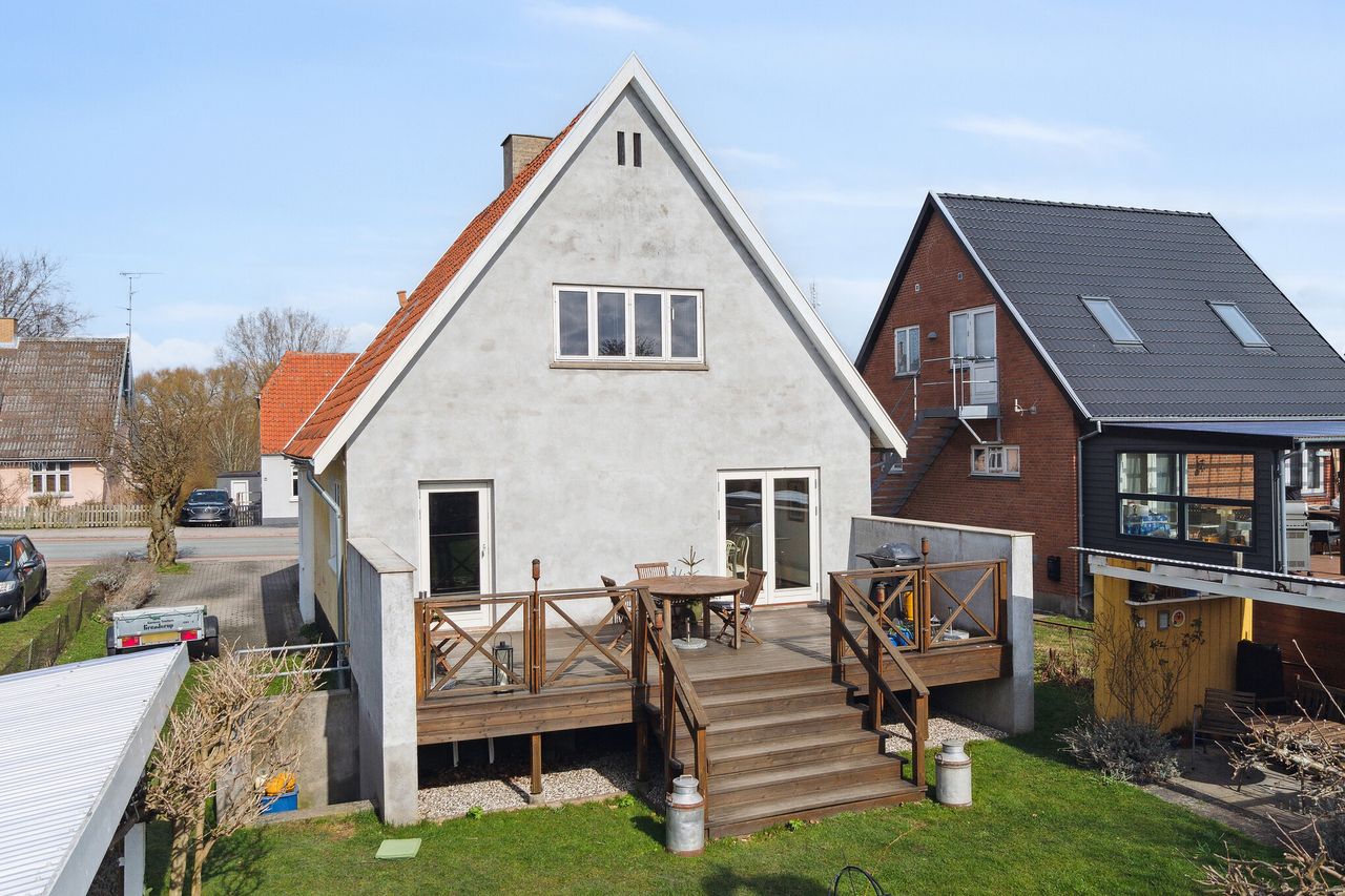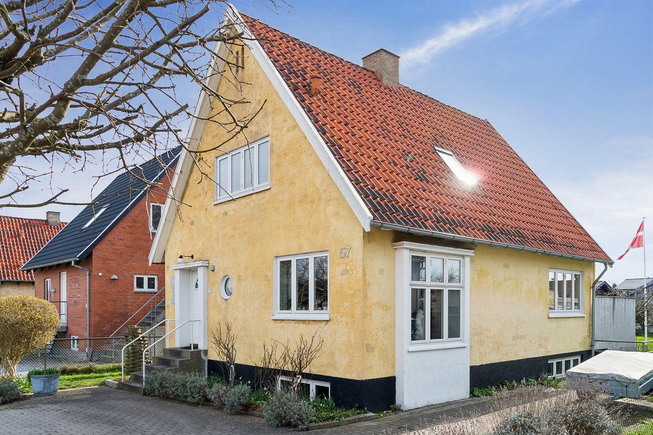 Det er kombinationen af en attraktiv beliggenhed i Helsinge by og en velkomponeret planløsning, der venter jer på Vestergade 57. I er tæt på alle hverdagens gøremål, og rumfordelingen giver masser af plads til hele familien. Prikken over i’et er den charmerende og meget solrige have.